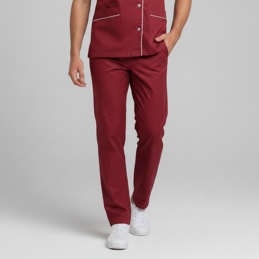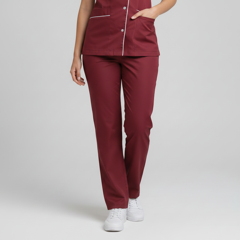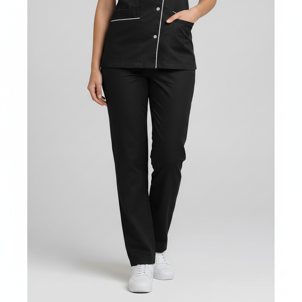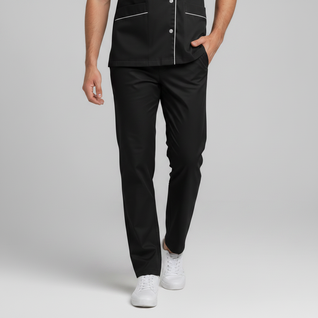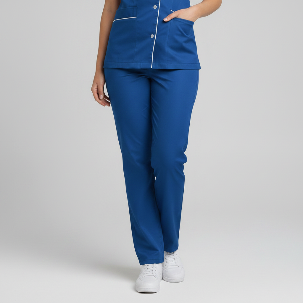 Product Overview Professional scrub set featuring a modern asymmetrical button-up top and matching trousers. Designed for a tailored fit and all-day comfort.