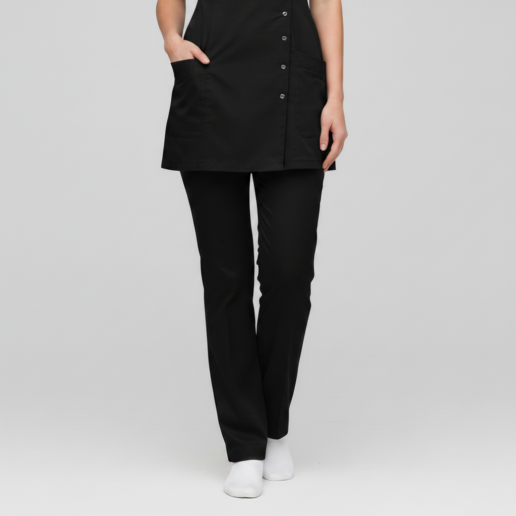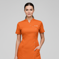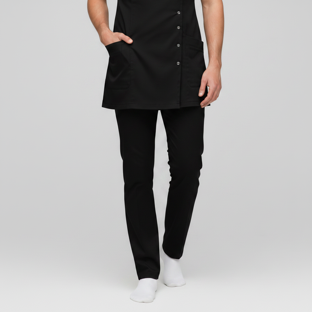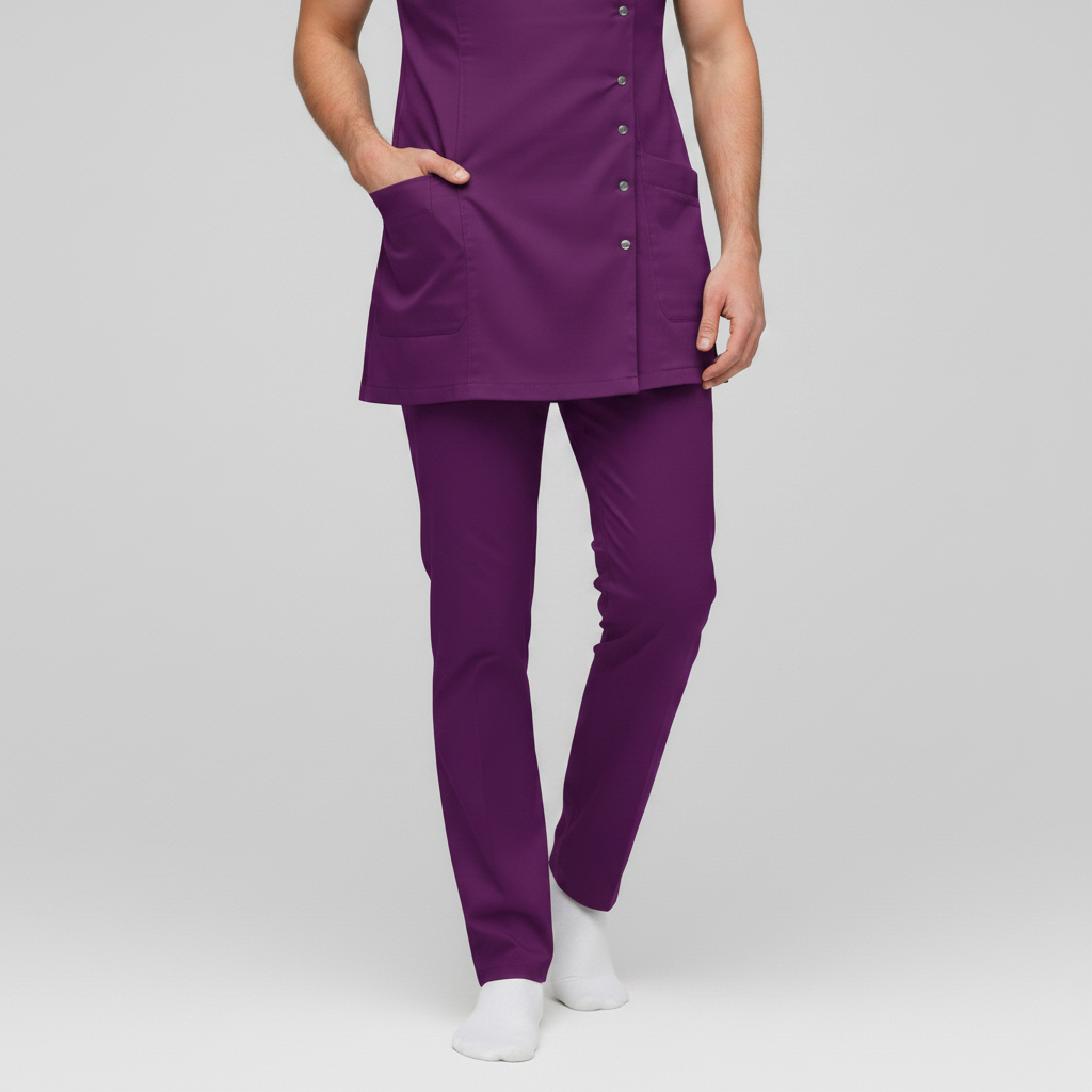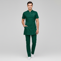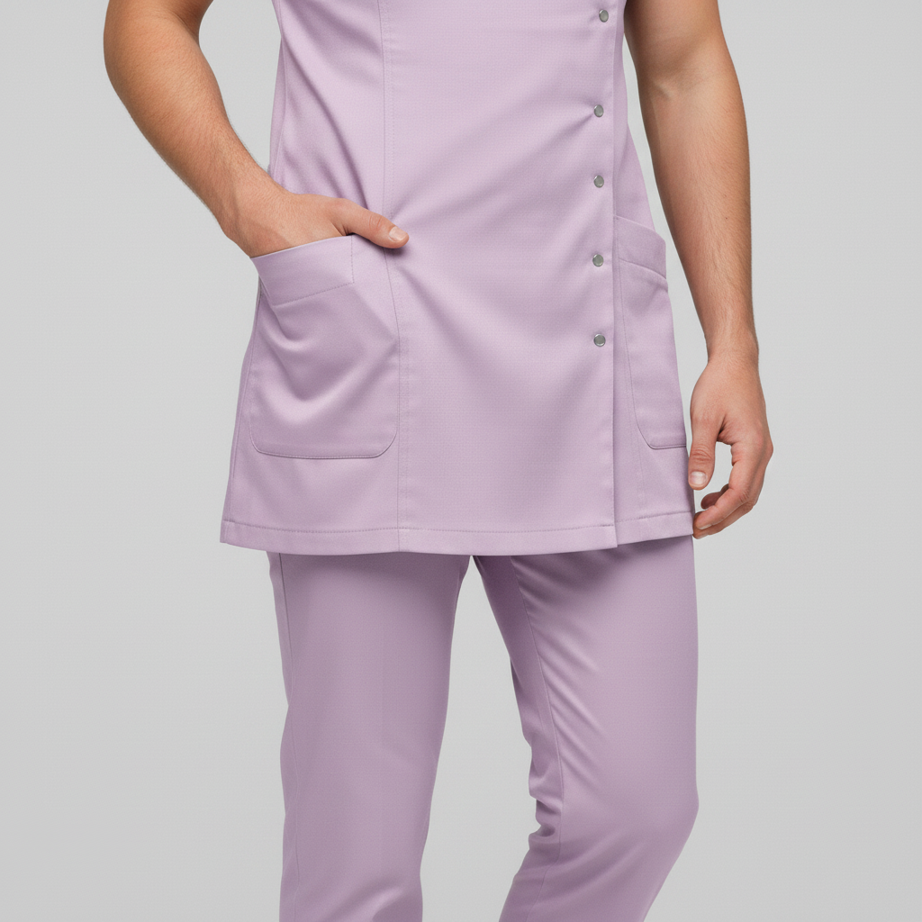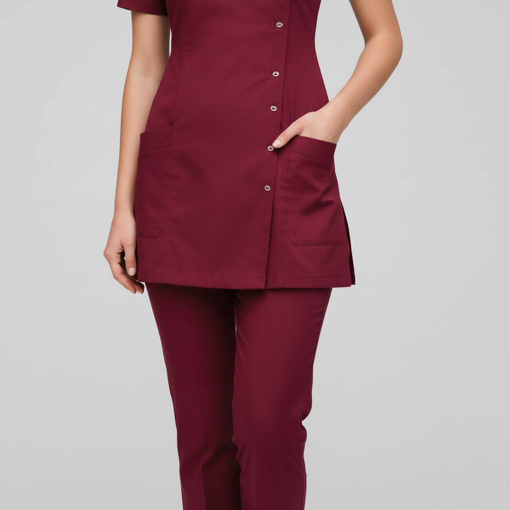 Product Overview A sophisticated, modern update to the professional medical uniform. This design features a unique cross-over front with a refined stand-up collar, offering a high-end look for clinical leaders and specialists.