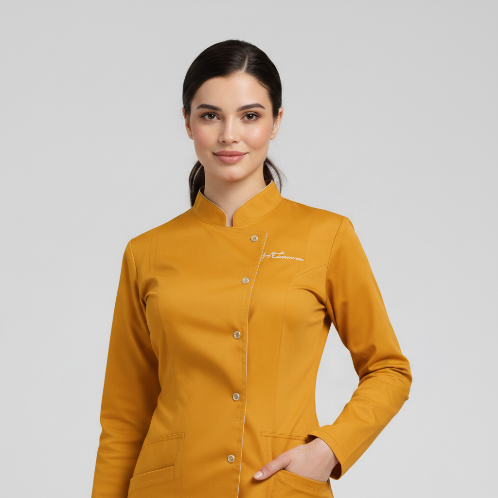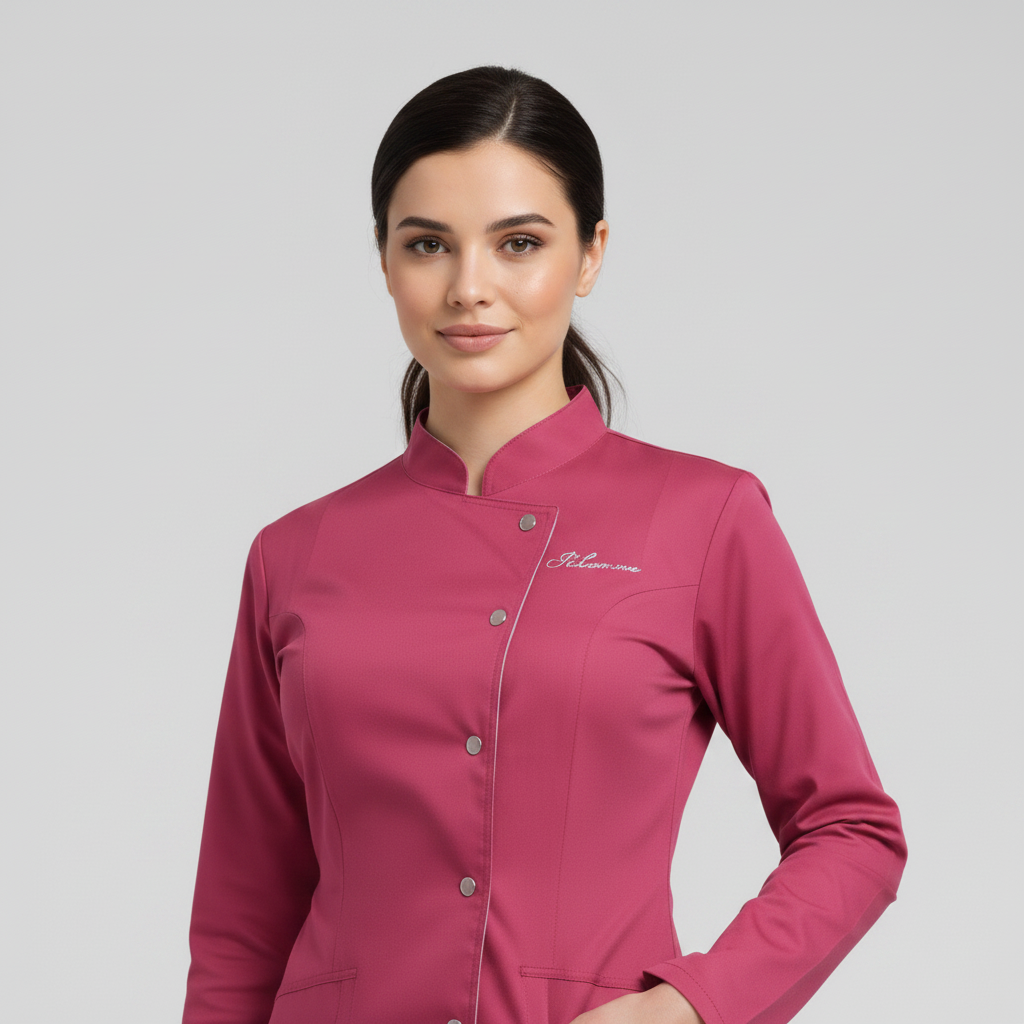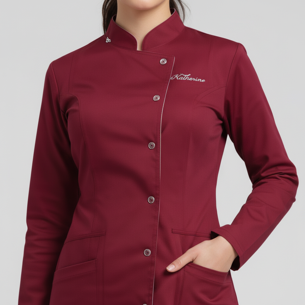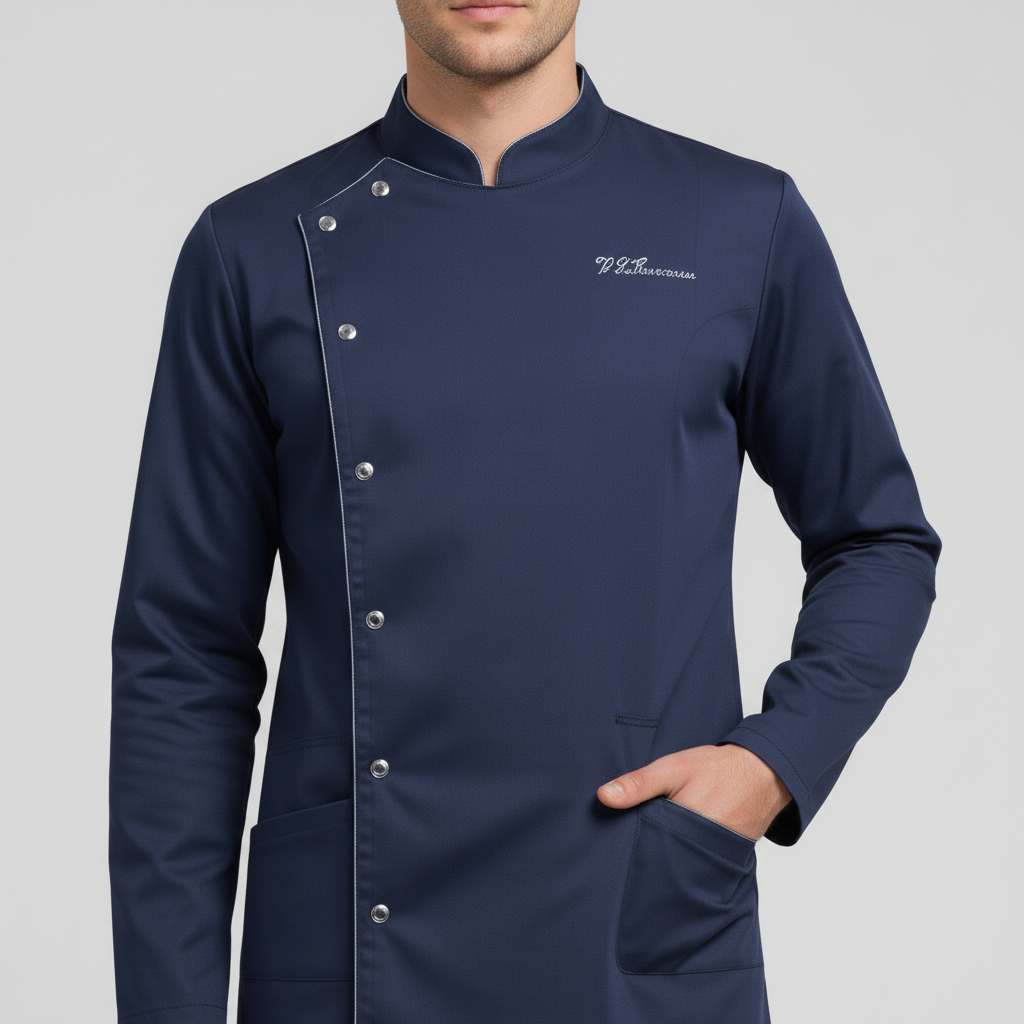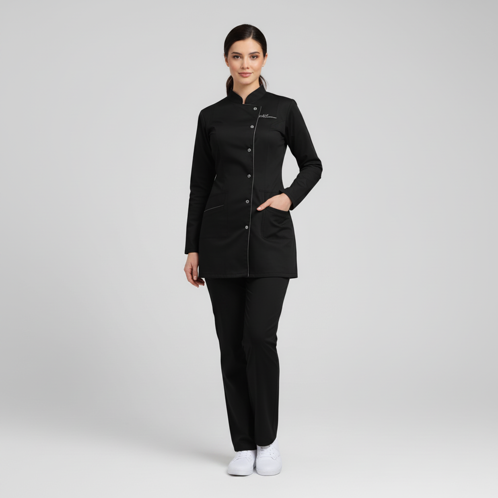 Product Overview A sophisticated, full-sleeve uniform designed for a high-end professional look. Featuring a modern notched mandarin collar and an asymmetrical button closure, this design provides maximum coverage without sacrificing style.