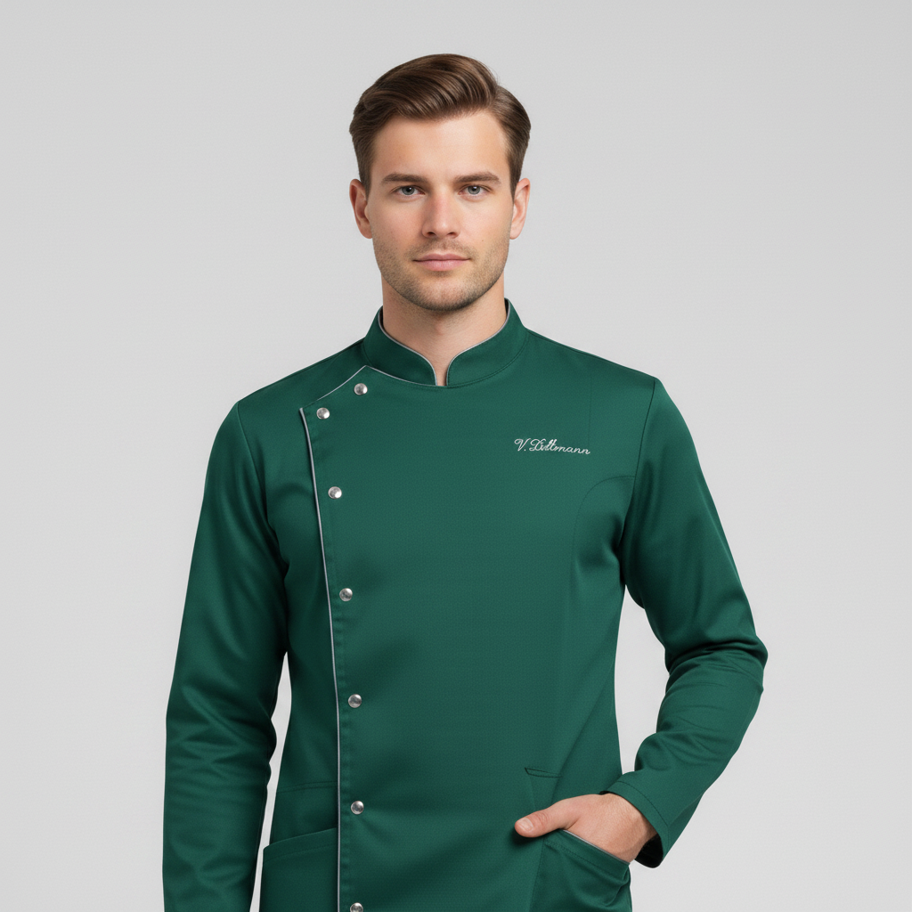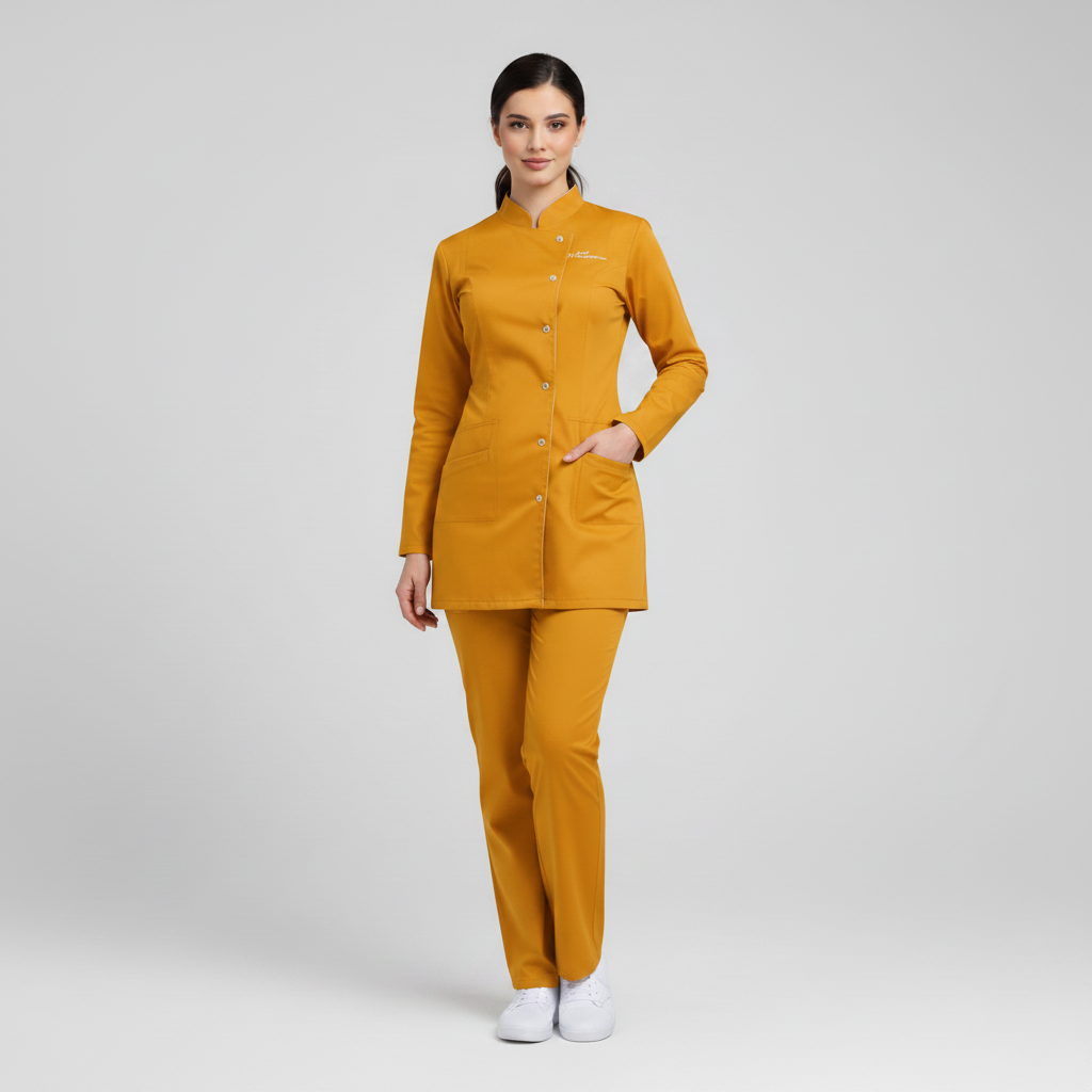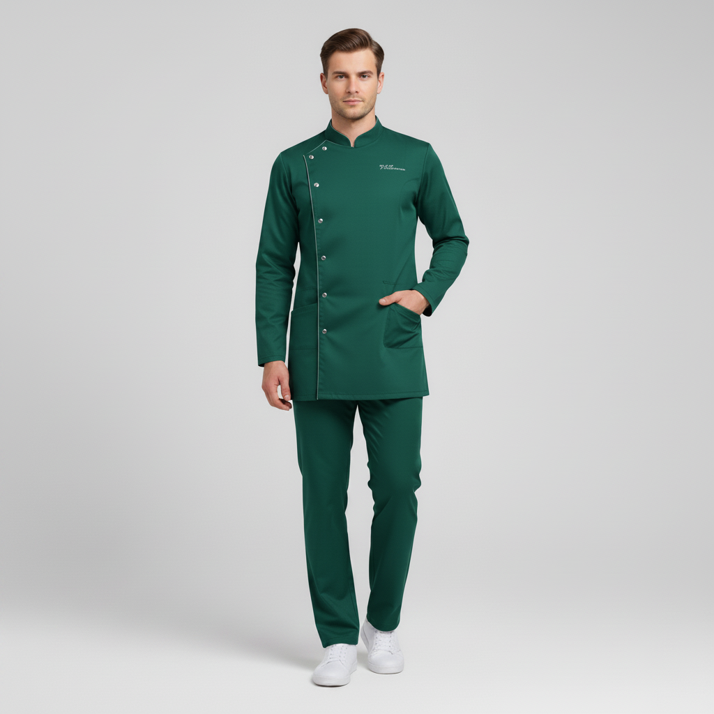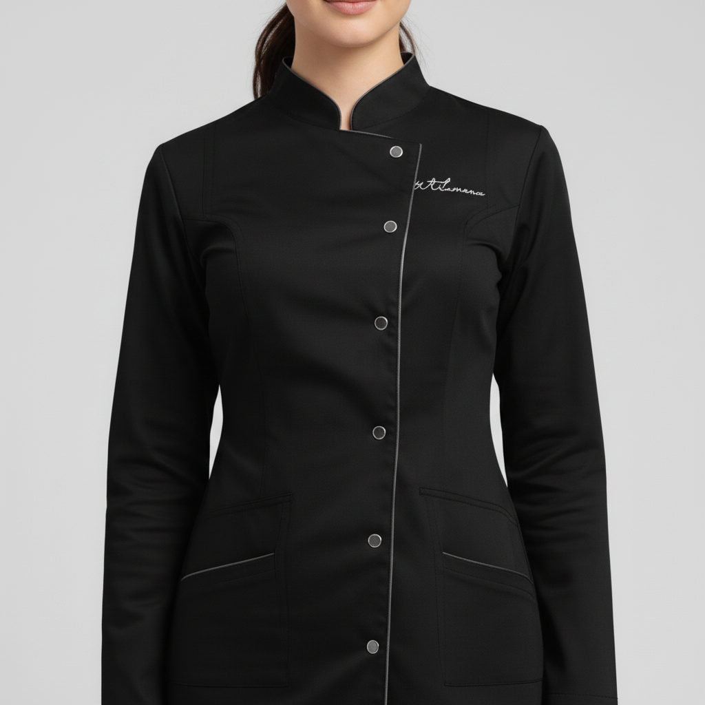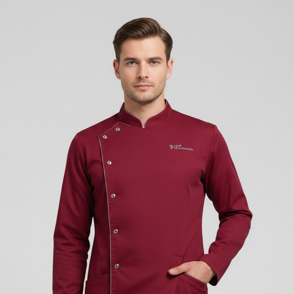 Product Overview A sophisticated, full-sleeve uniform designed for a high-end professional look. Featuring a modern notched mandarin collar and an asymmetrical button closure, this design provides maximum coverage without sacrificing style.