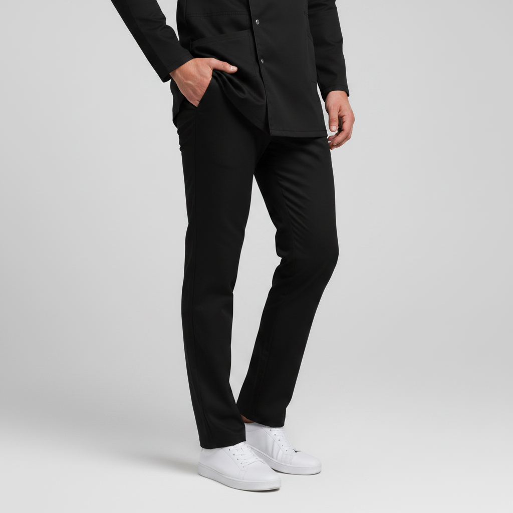 Fabric: Premium stretch-infused poly-cotton blend (wrinkle-resistant and soft-touch).