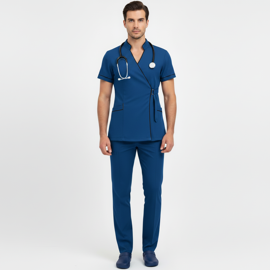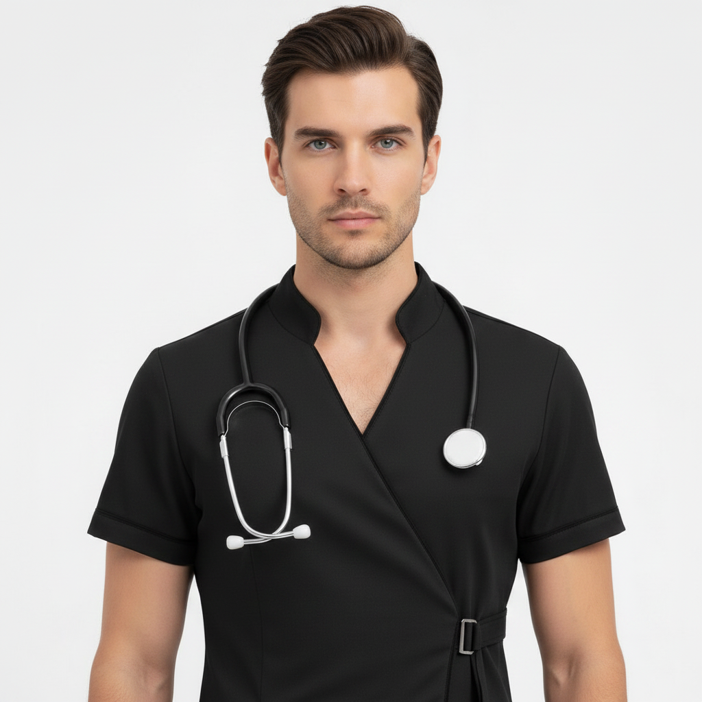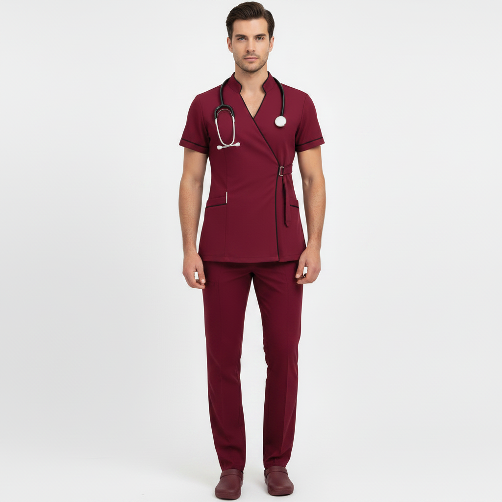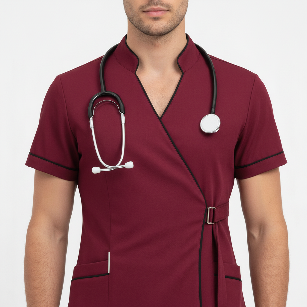 Product Overview A modern, clinical-chic uniform featuring a unique side-buckle closure. This design blends traditional professional style with a contemporary, high-fashion edge, perfect for those who want a standout look in the clinic.