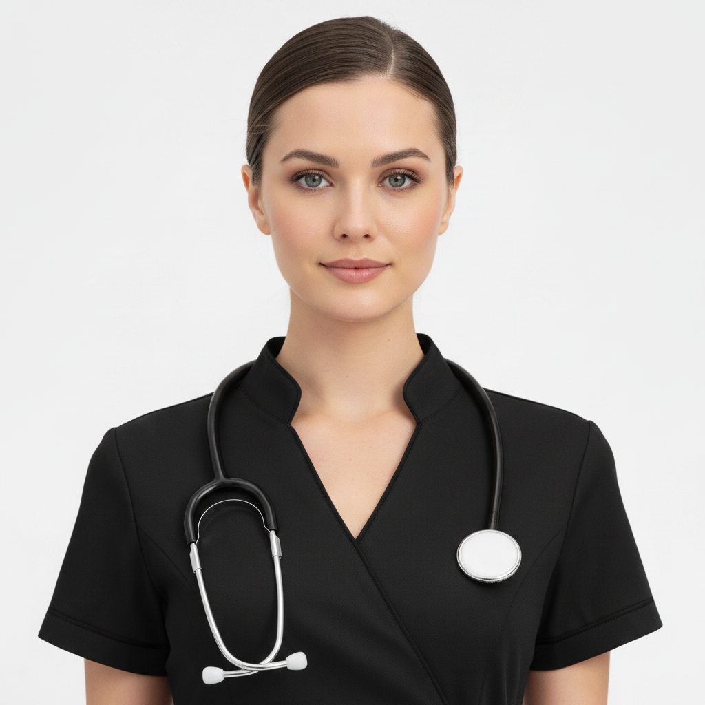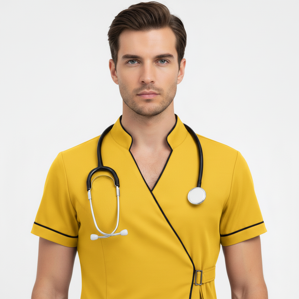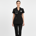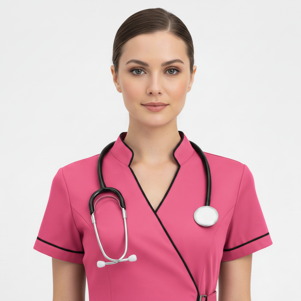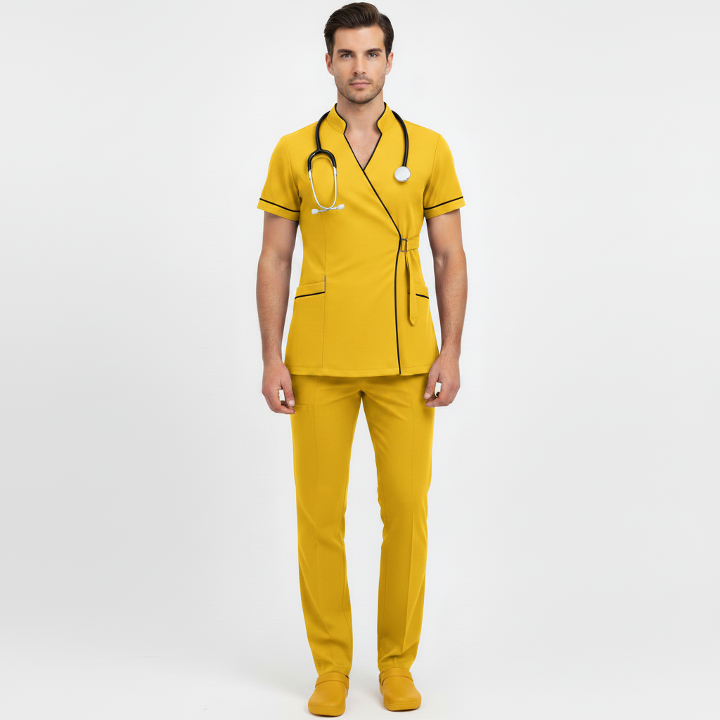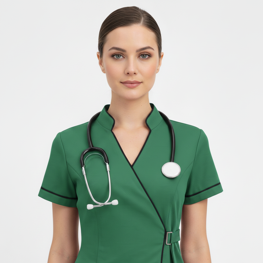 Product Overview A modern, clinical-chic uniform featuring a unique side-buckle closure. This design blends traditional professional style with a contemporary, high-fashion edge, perfect for those who want a standout look in the clinic.